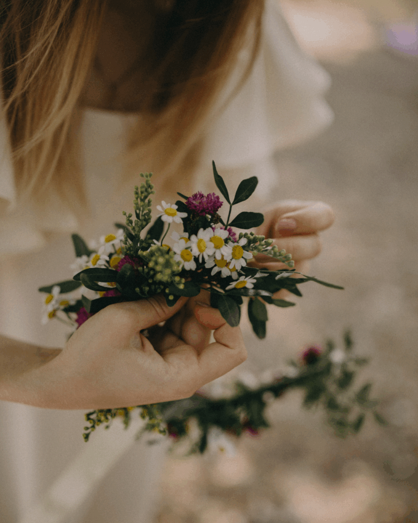 Bindet gemeinsam kleine Blumenkränze, die ihr als Symbol für eure Freundschaft mit nach Hause nehmen könnt.